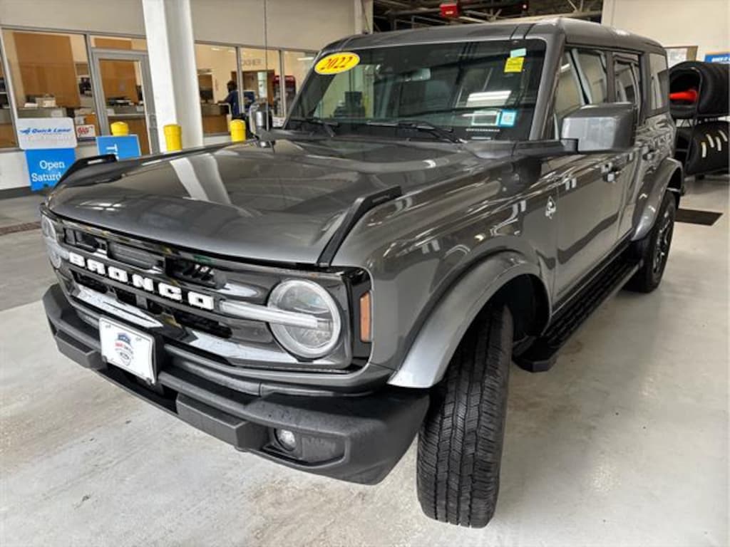 Superb Condition, CARFAX 1-Owner. Heated Leather Seats, Nav System, Moonroof, Onboard Communications System, iPod/MP3 Input, Satellite Radio, Back-Up Camera, Aluminum Wheels, DARK GRAY W/NAVY PIER, HEATED LEATHER-TRIMMED/VINYL BUCKET SEATS KEY FEATURES INCLUDENavigation, Back-Up Camera, Satellite Radio, iPod/MP3 Input, Onboard Communications System Serviced here, Non-Smoker vehicle**Brand New Brakes**, Lifetime Powertrain Ford Outer Banks with Carbonized Gray Metallic exterior and Dark Gray w/Navy Pier interior features a V6 Cylinder Engine with 315 HP at 5500 RPM*. OPTION PACKAGES10-way power driver seat, 8-way front passenger seat and second row armrest w/2 beverage holders, electric brake boost, GVWR: 6,060 lbs, Rear-Window Defroster & Washer, Hard Top Sound Deadening Headliner, Front Row Top Panels Storage Bag, For on-vehicle storage, TOWING CAPABILITY, (STD). EXCELLENT VALUEReduced from $42,577. This Bronco is priced $2,800 below J.D. Power Retail. BUY WITH CONFIDENCESuperb Condition Pricing analysis performed on 9/23/2025. Horsepower calculations based on trim engine configuration. Please confirm the accuracy of the included equipment by calling us prior to purchase.